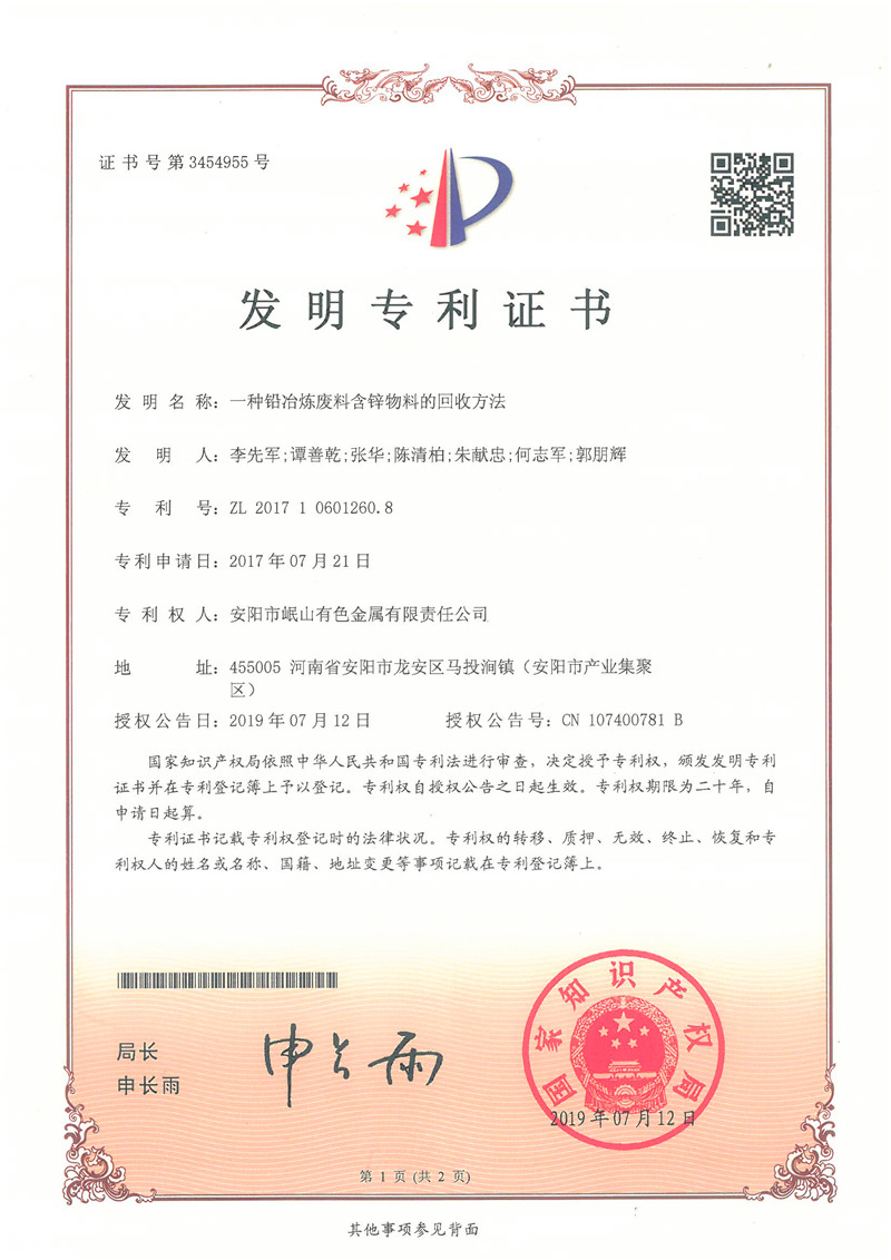 异地扩建,年产6.3万吨铅和金银回收